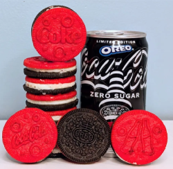 Da un lato è il classico cioccolato Oreo, dall'altro è un biscotto dorato tinto di rosso con il logo Coca-Cola. La crema bianca all'interno contiene vero sciroppo di Coca-Cola e zuccherini frizzanti